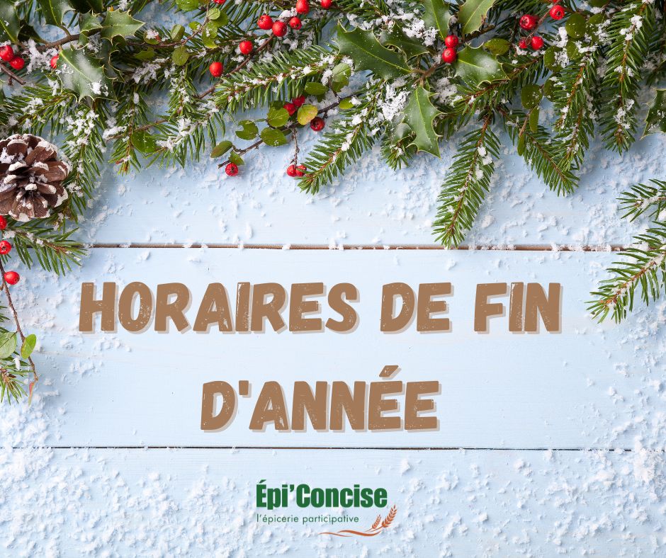 Les fêtes de fin d’année approchent et nous restons à votre disposition pendant toute cette période ! Voici nos horaires spéciaux pour que vous puissiez organiser au mieux vos courses de fêtes.
